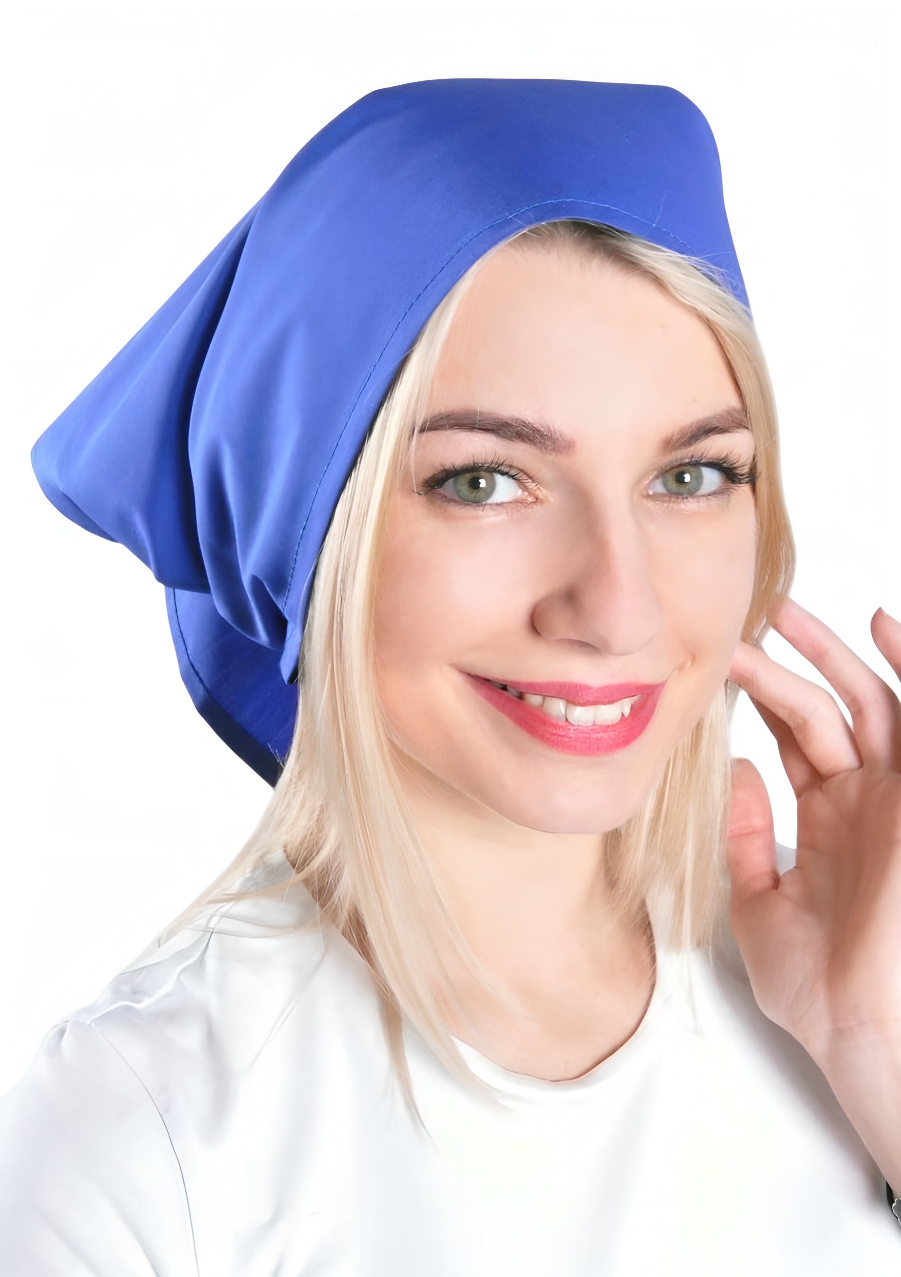 Косынка в цвете «василек» из ткани Тиси — это классический элемент униформы для медиков, поваров и сотрудников сферы услуг..